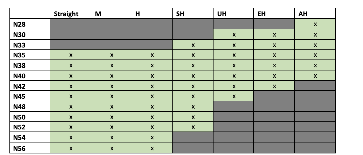 Table 1 – Available sintered NdFeB material grades.