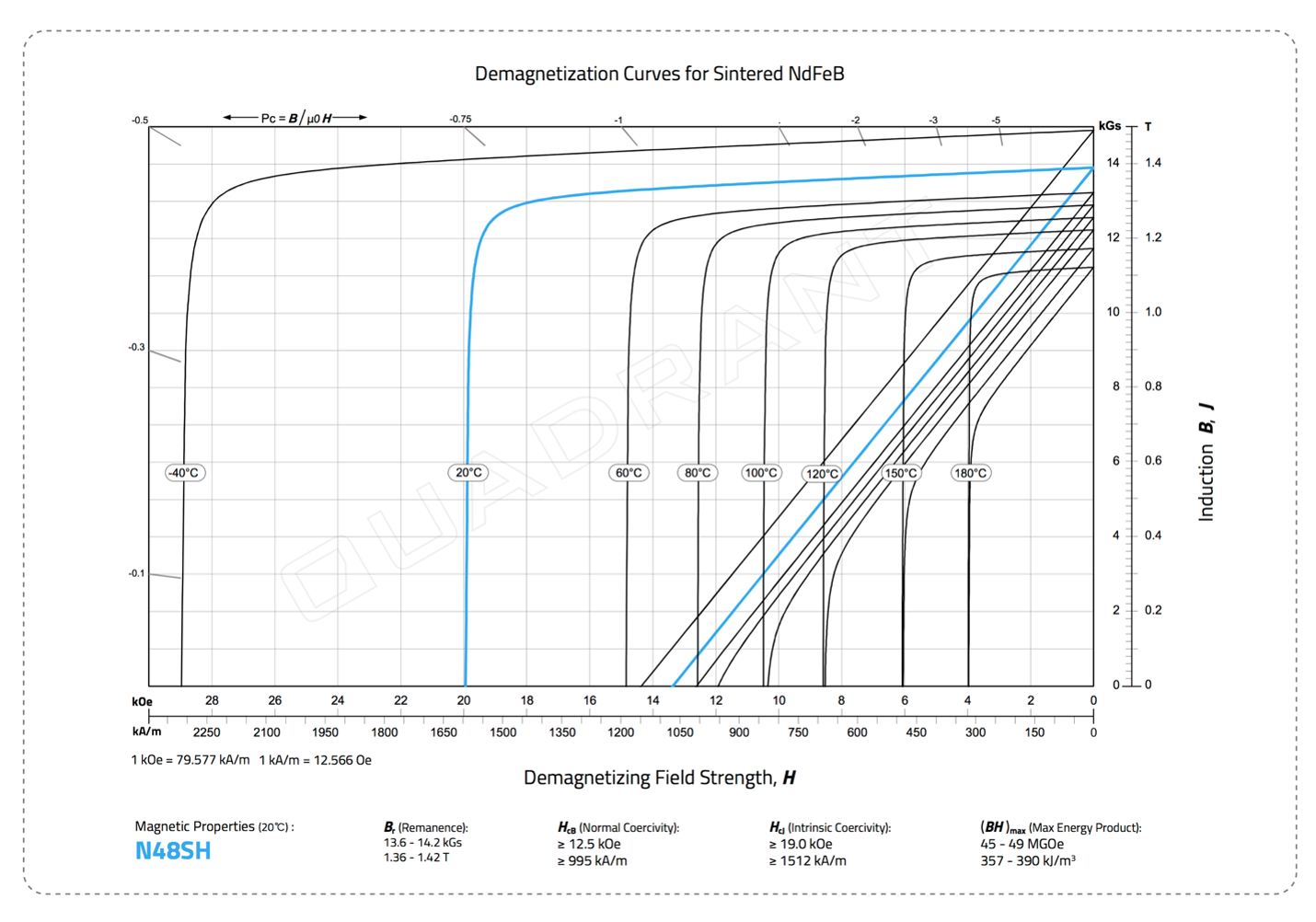 Image 1 – Example 2nd quadrant N48SH grade material hysteresis curve (BH curve).